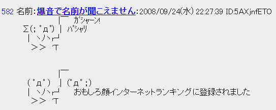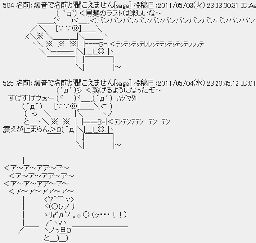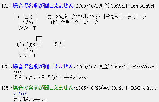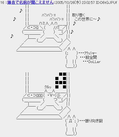 スレッドが立ってから2日後の2005年10月28日、以下のようなアスキーアートが投稿された。