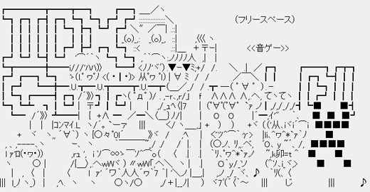 2005年当時は2ちゃんねるを中心にアスキーアート文化が隆盛を極めていた。上で紹介した「振り向き厨と筐体」を表現したテキストもアスキーアートの一種である。